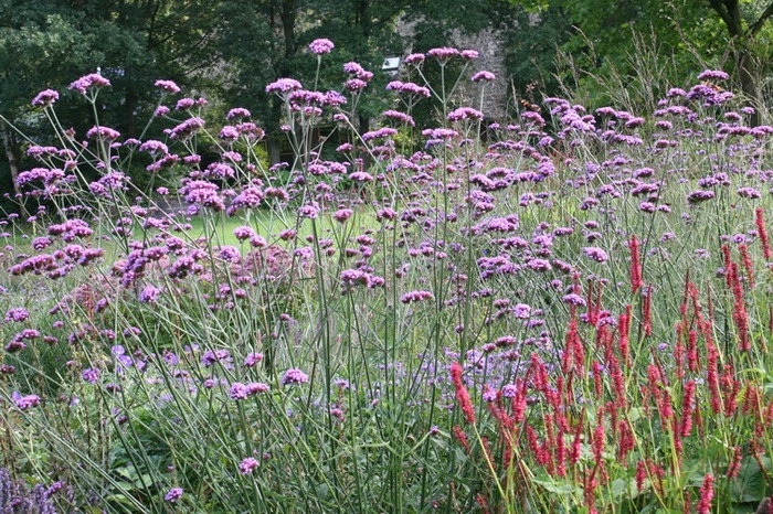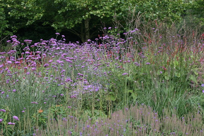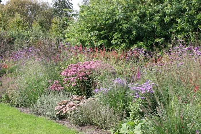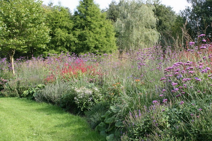 Deze beplanting moet niet gezien worden als border, maar als bloemenweide. Het geheel heeft een natuurlijk karakter.