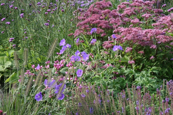 Geranium 'Orion' en Eupatorium 'Purple Bush'